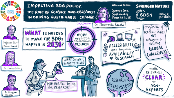 In May 2021, on the sidelines of the UN Multi-Stakeholder Forum on Science, Technology, and Innovation, Springer Nature and the UN Sustainable Development Solutions Network (SDSN) hosted a virtual debate on how to bridge the divide between the research and policy communities to accelerate innovation on the SDGs and build resiliency post COVID-19. The debate also drew on insights from a white paper on how to foster greater collaboration and inclusive problem-solving between these communities.